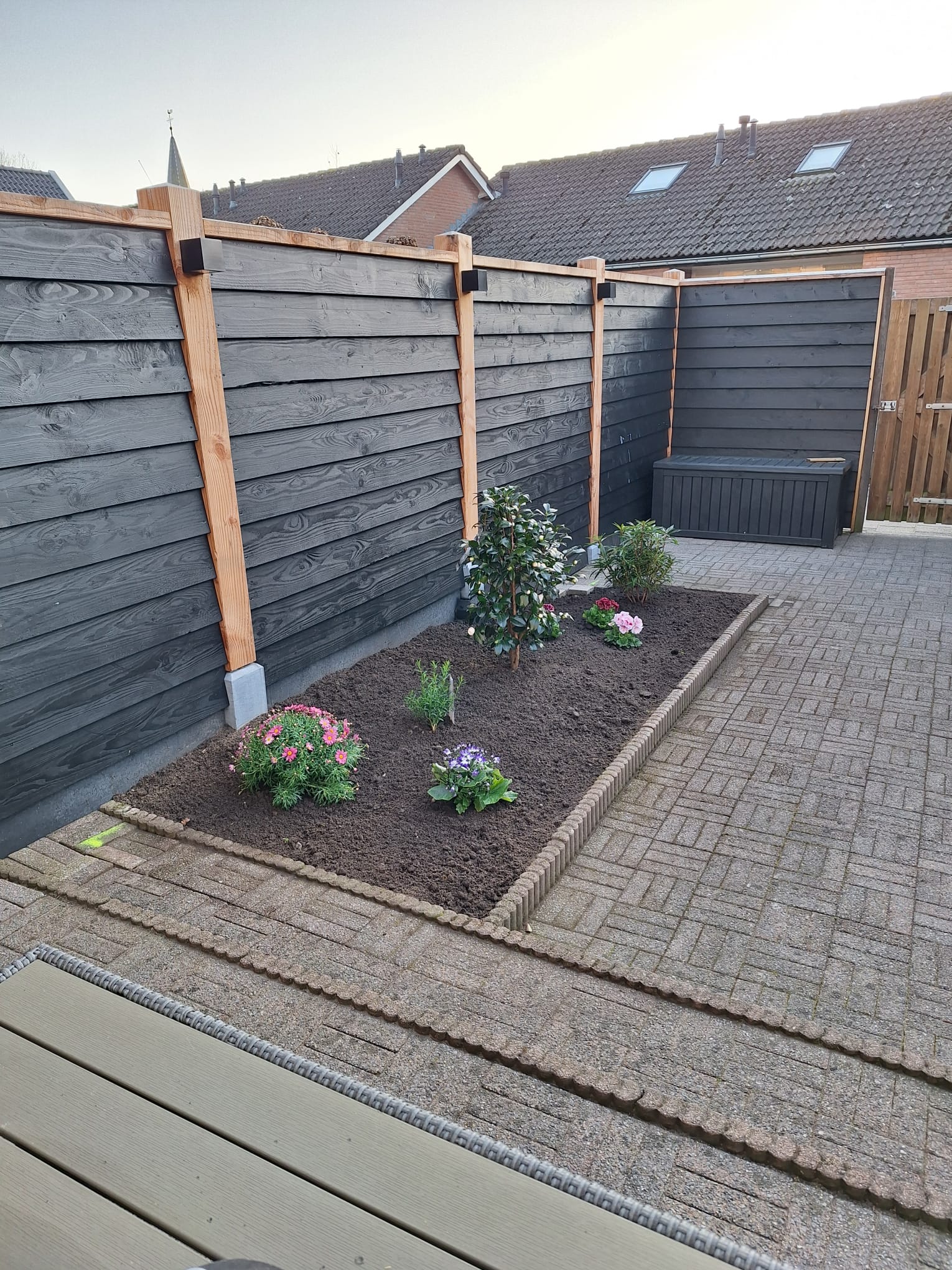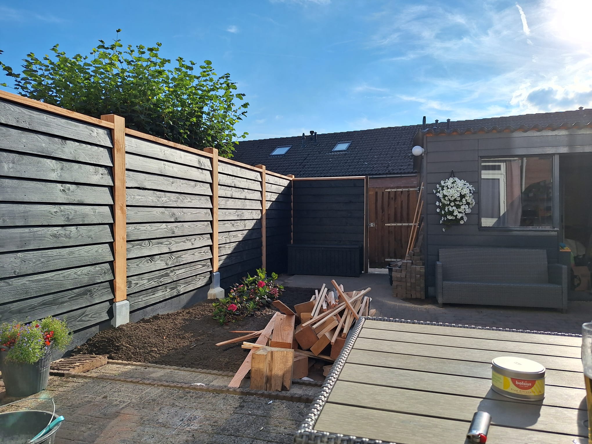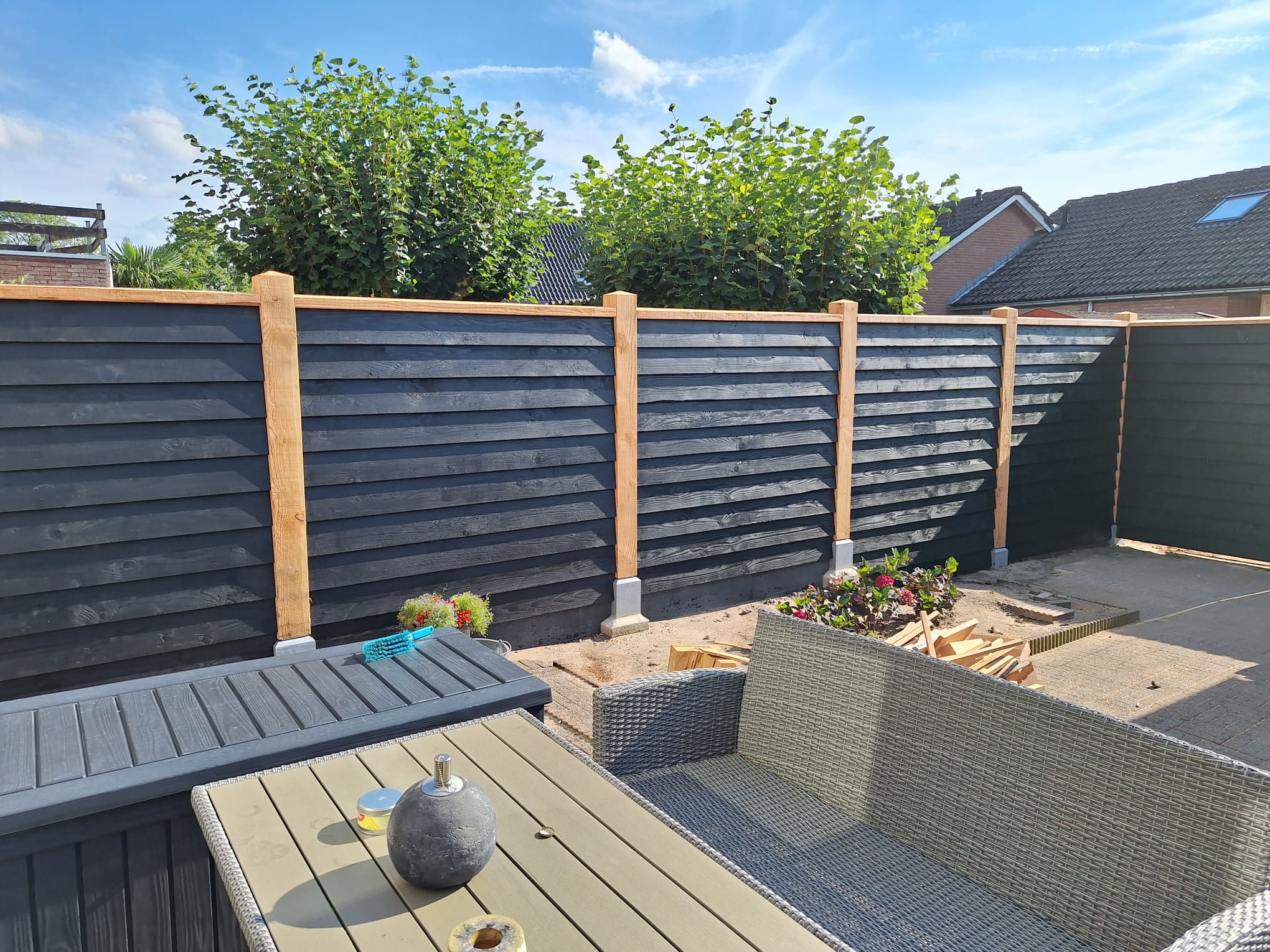 Het eindresultaat? Een strak afgewerkte schutting die zorgt voor privacy, een natuurlijke uitstraling én jarenlang meegaat.