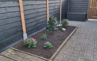 Bij deze tuin hebben we onlangs een prachtige nieuwe schutting geplaatst. De keuze viel op Douglas hout in combinatie met betonpalen – een populaire en duurzame oplossing die zowel robuust als stijlvol is.